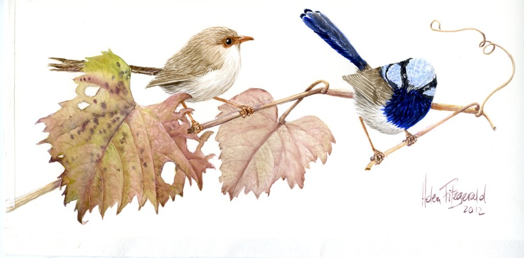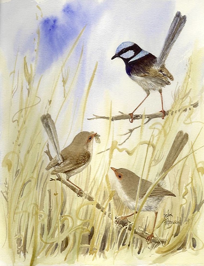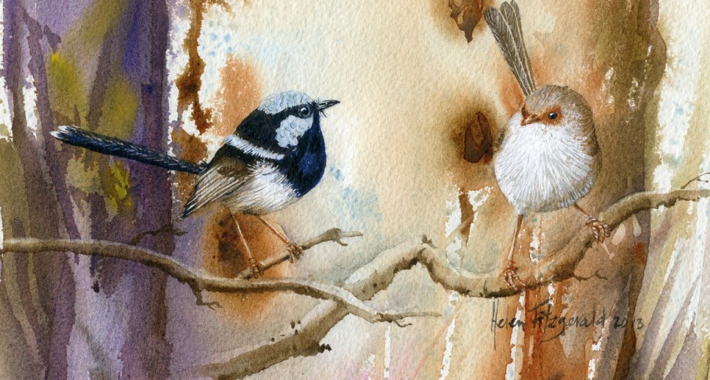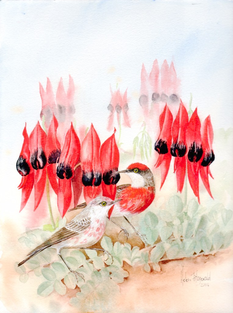 Birds Australian birds in Watercolour Azure kingfishers B15 Crimson chats in sturts desert pea 593 Crimson Rosella in Banksia Double barred finches (5) 447 E leucoxylon spotted pardalote 1134 Eastern rosella trio 591 Emu face B31 Related Published by helenfitzgerald880 Australian Botanical illustration & Wildlife Artist View more posts
